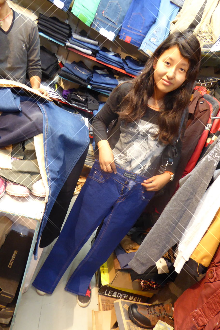 Ich dachte, nun ist der schwierigste Teil geschafft. Als wir in dem uns anempfohlenen Markt ankamen, mussten wir feststellen, dass dort nur an Händler, jedoch keine einzelnen Kleidungsstücke verkauft wurden. Also ging es mitten durchs Gewühl in den nächsten Markt. Pasang war total aufgeregt, was ja auch absolut verständlich war. Ich hatte sie vorher gefragt, was sie braucht und mir von einem Freund ausrechnen lassen, was das Ganze in etwa kosten würde. Also nannte ich ihr das Budget und ließ sie erstmal selber entscheiden. Ab und zu griff ich beratend ein, wenn sie allzu sehr den modischen Aspekten folgte und die praktische Seite vernachlässigte. Ich will ehrlich sein – als sie sich nach einer halben Stunde noch immer nicht für eine Hose entschieden hatte, wurde ich innerlich schon ziemlich ungeduldig. Und das wiederholte sich bei Schuhen und Jacke genauso. Es hat mich echt ziemlich viel Beherrschung gekostet, mir meine Ungeduld nicht anmerken zu lassen. Als Pasang sich dann am Ende zwischen zwei T-Shirts nicht entscheiden konnte, habe ich ihr die Entscheidung abgenommen und das Budget um die wenigen Rupien aufgestockt, so dass sie sich beide kaufen konnte.